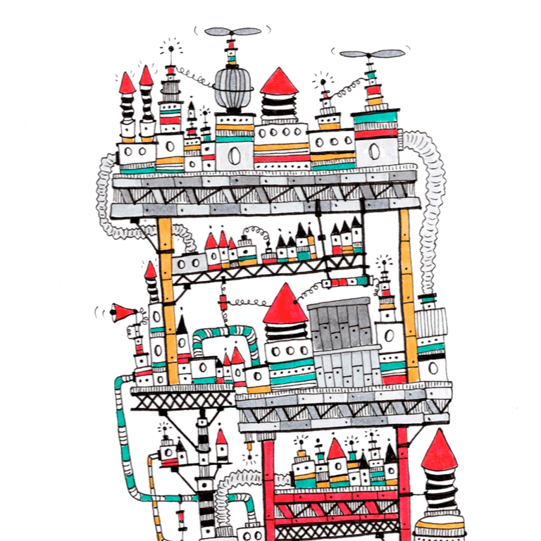 Las casitas industrial que aquí se presentan, se han desarrollado hacia arriba. Algunas especulaciones apuntan que han crecido verticalmente imitando a las ciudades más desarrolladas y sus rascacielos.