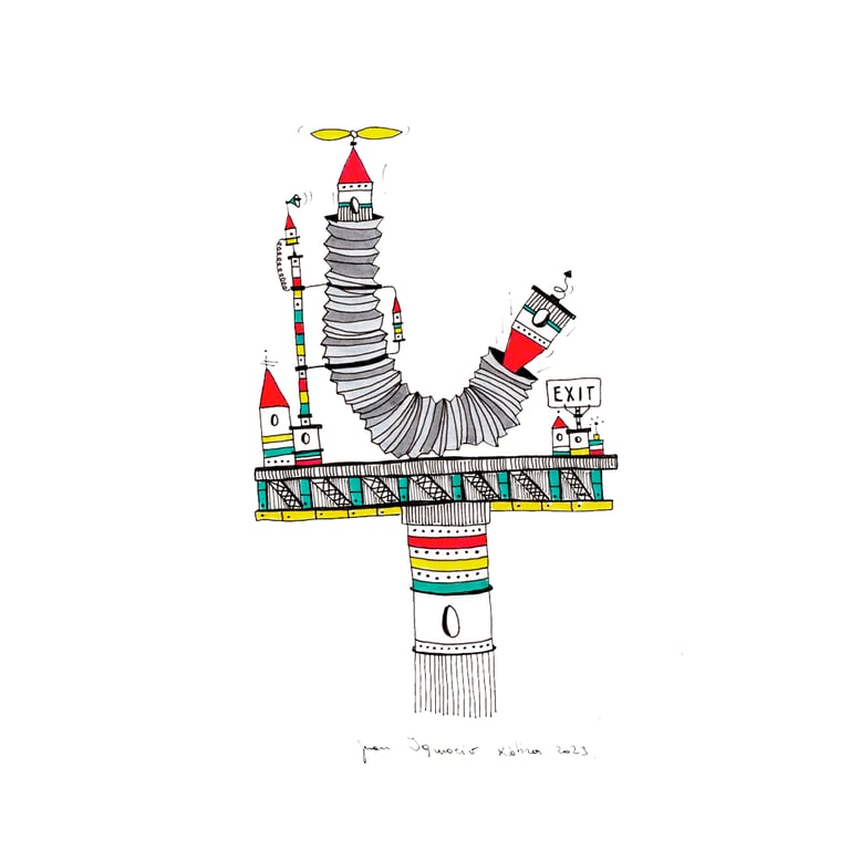 Las casitas aburridas deciden construir un tobogán para casitas con hélices. El único problema del diseño estructural parece ser la salida patas para arriba.